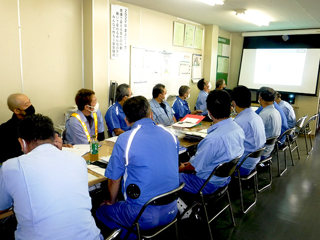 さらに社内安全会議で代表者同士が話し合った内容を、各職場に持ち帰って全員にフィードバック。そうして皆の意識と知識を高め合っていきます。