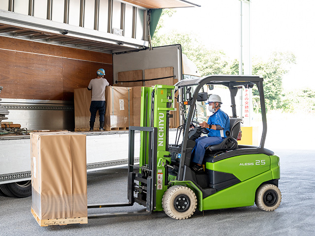 バーコードできちんと管理された各製品は、出荷時にもトラックドライバーと綿密な連携を取り、万全な製品チェックが行なわれた状態で得意先様へお届けいたします。