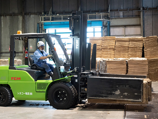 トネコーでは、製紙工場にて物流作業の請負を行なっています。構内請負作業に関して、弊社はオペレーターの教育を最優先に行っています。生産管理、品質管理、安全活動。全ての面を徹底し、24時間体制で安心・安全・安定の操業を実現しています。